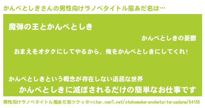 | 女子向けラノベタイトル風あだ名 | 『かんべとしき夫妻のなれそめ』 |