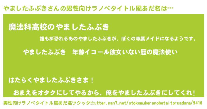 | 女子向けラノベタイトル風あだ名 | 『やましたふぶきの玉の輿計画!』 |