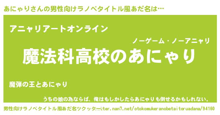 | 女子向けラノベタイトル風あだ名 | 『あにゃりなんてお断りですっ。』 |