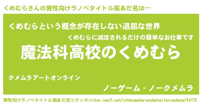 | 意味不明あだ名 | 『自称くめむら』『永久保存くめむら』 |