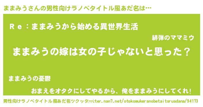 | 胡散臭い通販商品みたいなあだ名 | 『全米が絶賛したサプリメント…その名も「ままみう」』 |