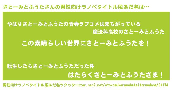 | 意味不明あだ名 | 『住所不定無職さとーみとふうた(95歳)』 |