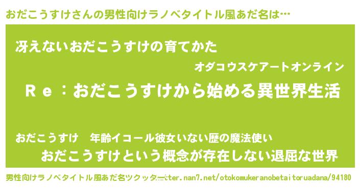| 女子向けラノベタイトル風あだ名 | 『闇のおだこうすけ』 |