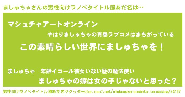 | 胡散臭い通販商品みたいなあだ名 | 『あなたにだけ特別に提供する限定10本のレアな日本酒…その名も「ましゅちゃ」』 |