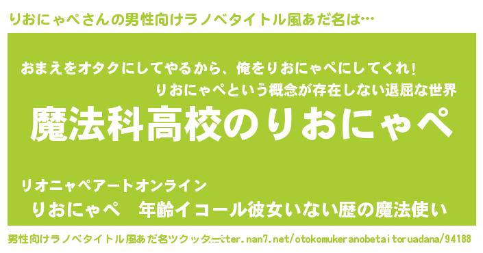| 女子向けラノベタイトル風あだ名 | 『りおにゃぺなんてお断りですっ。』 |