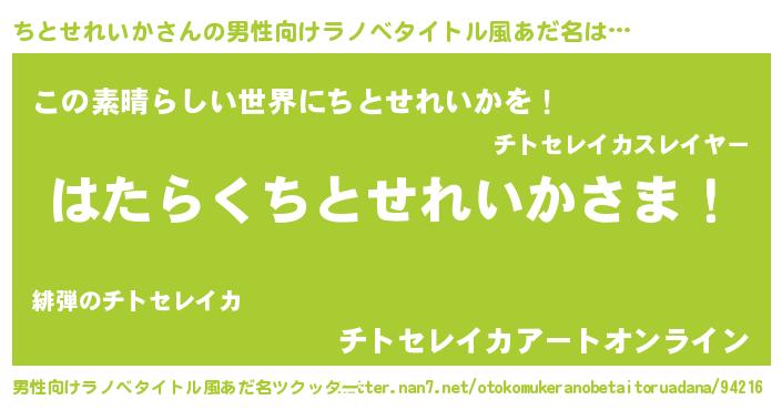 | 意味不明あだ名 | 『住所不定無職ちとせれいか(13歳)』 |