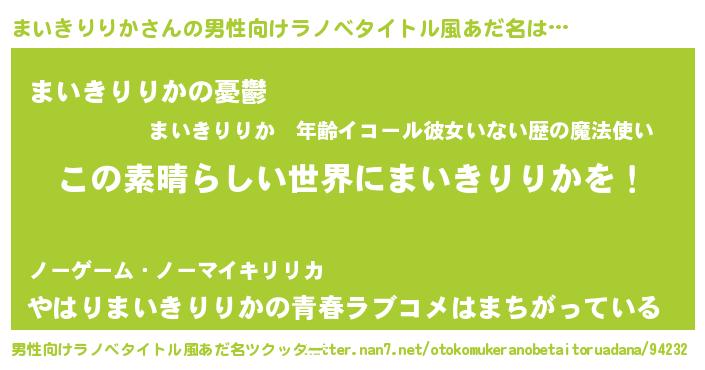 | 意味不明あだ名 | 『住所不定無職まいきりりか(93歳)』 |