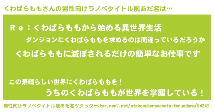 | ヒーロー風カッコイイあだ名 | 『究極戦士クワバラモモ』『天弓騎士クワ』 |