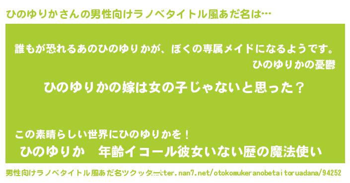 ひのゆりかさんの男性向けラノベタイトル風あだ名をツクッター!