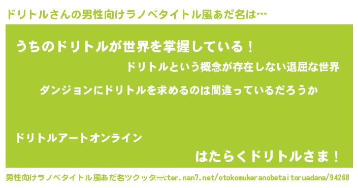 | ヘコむあだ名 | 『ドリっちょ』『ドリトル(震え声)』 |