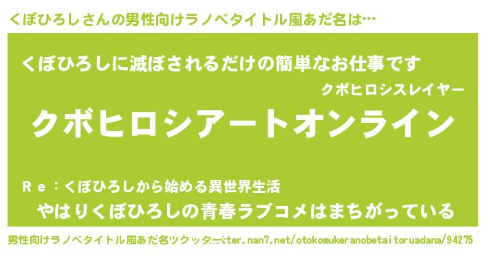 | ファンタジー風あだ名 | 『クボフェル』『エターナルクボヒロシー』 |