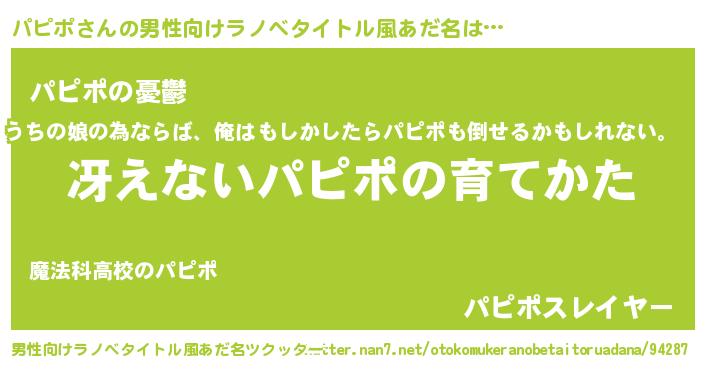 | 女子向けラノベタイトル風あだ名 | 『男装パピポの憂鬱な任務』 |