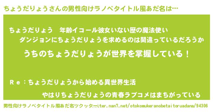 | ヒーロー風カッコイイあだ名 | 『ウルトラちょうだりょうマン』 |