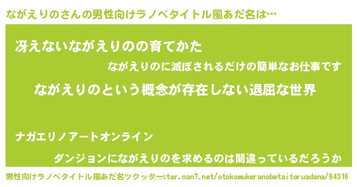 | ヘコむあだ名 | 『ながえりの(苦笑)』『ながっぺ』 |