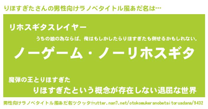 | 肩書あだ名 | 『りほすぎた教授』『りほすぎた大佐』 |