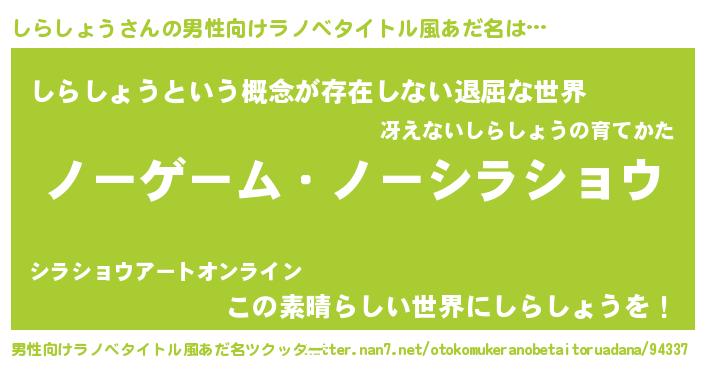 しらしょうさんの男性向けラノベタイトル風あだ名をツクッター!