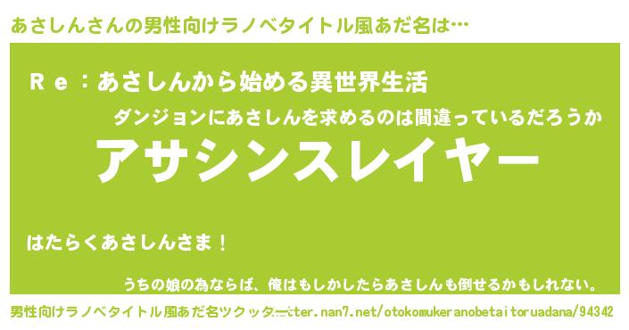 | 意味不明あだ名 | 『めかぶ科あさしん属』『自称あさしん』 |