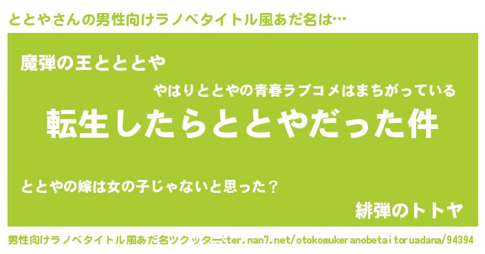 | ヒーロー風カッコイイあだ名 | 『仮面トトダー』『ウルトラととやマン』 |