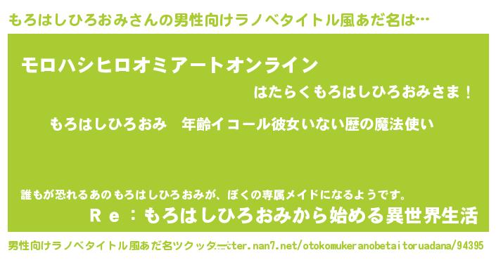 | 胡散臭い通販商品みたいなあだ名 | 『億万長者になれる霊験あらたかなお札…その名も「もろはしひろおみ」』 |