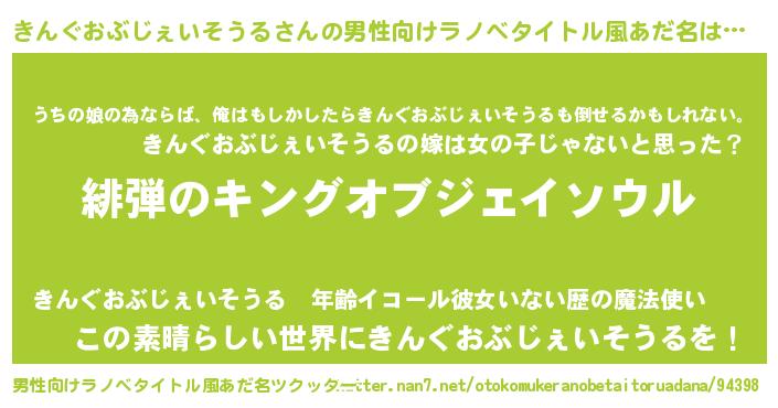 | 伝説のあだ名 | 『秘められし陰陽師きんぐおぶじぇいそうる』 |