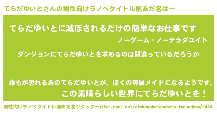 | 女子向けラノベタイトル風あだ名 | 『てらだゆいとは平凡を望む』 |
