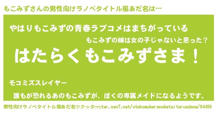 | ヒーロー風カッコイイあだ名 | 『ウルトラもこみずマン』『ネオモコミズ』 |