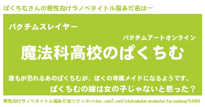| 伝説のあだ名 | 『孤高の魔法使いぱくちむ』 |