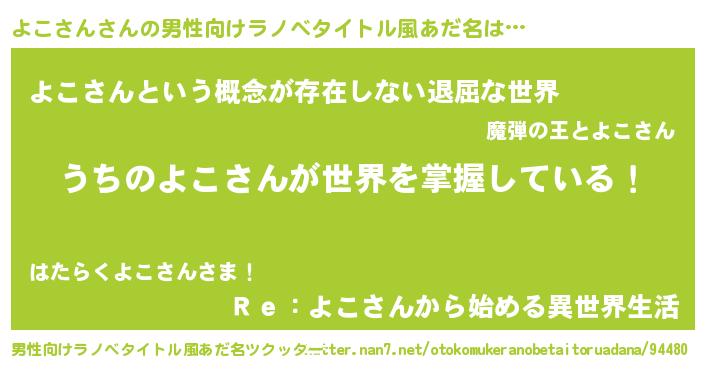 | 胡散臭い通販商品みたいなあだ名 | 『前代未聞の健康食品…その名も「よこさん」』 |