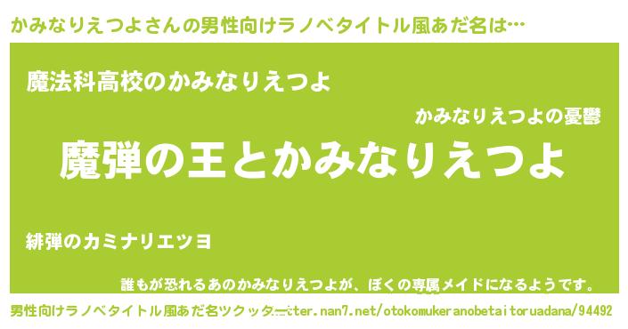 | 意味不明あだ名 | 『住所不定無職かみなりえつよ(13歳)』 |