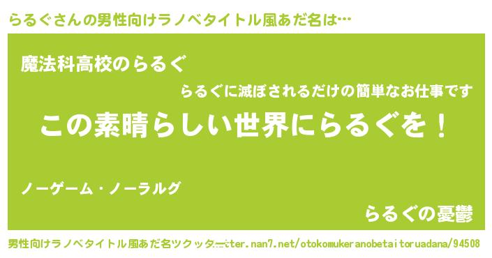 らるぐさんの男性向けラノベタイトル風あだ名をツクッター!