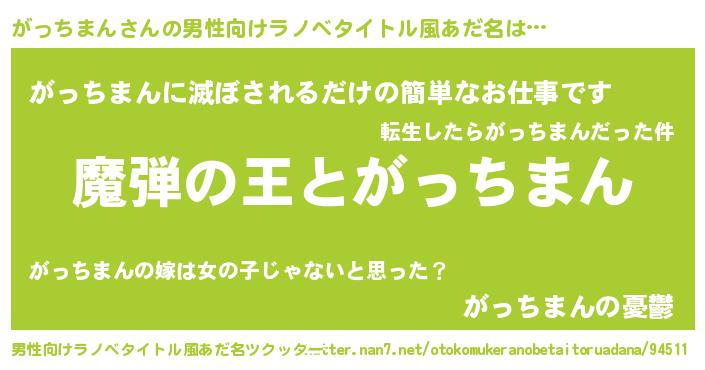 | 女子向けラノベタイトル風あだ名 | 『がっちまんが死なない童話 林檎のがっちまんの診療簿』 |