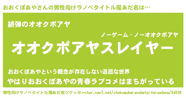 | 料理風あだ名 | 『おおくぼあやごはん』 |