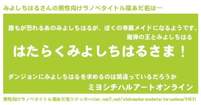 | 胡散臭い通販商品みたいなあだ名 | 『来世でも幸せになれる健康食品…その名も「みよしちはる」』 |