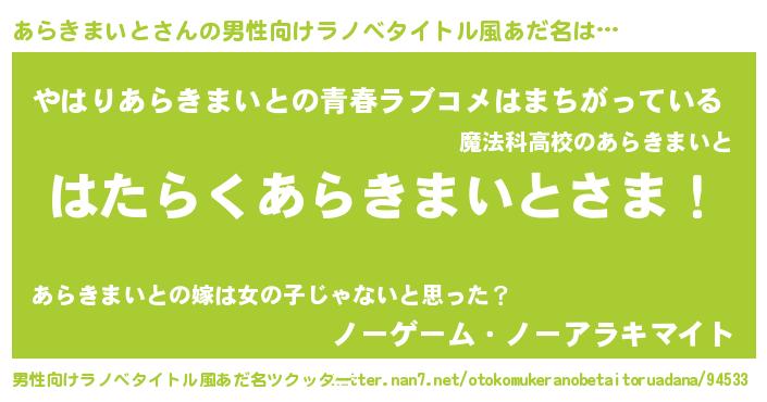 あらきまいとさんの男性向けラノベタイトル風あだ名をツクッター!
