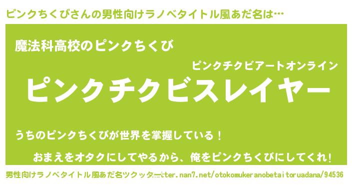 | ヒーロー風カッコイイあだ名 | 『ウルトラ戦士ピンクチクビ』 |
