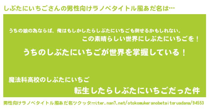 | 女子向けラノベタイトル風あだ名 | 『男装しぶたにいちごの憂鬱な任務』 |