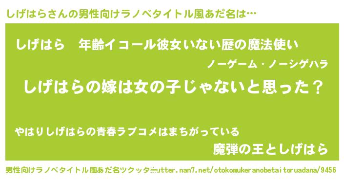 | 女子向けラノベタイトル風あだ名 | 『しげはら様がみてる』『しげはら恋絵巻』 |