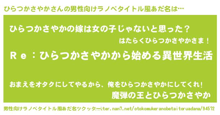 | 女子向けラノベタイトル風あだ名 | 『闇のひらつかさやか』 |