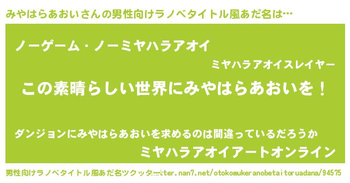 | 意味不明あだ名 | 『住所不定無職みやはらあおい(62歳)』 |