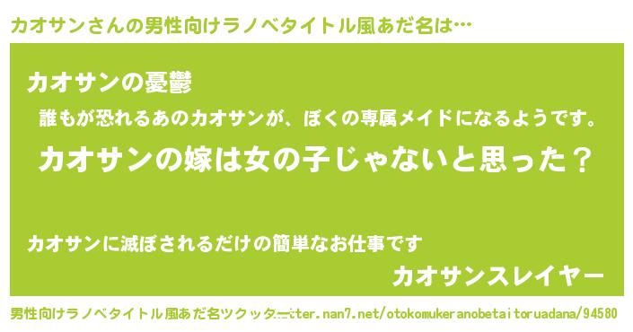 | ヒーロー風カッコイイあだ名 | 『銀牙騎士カオ』『スーパーカオサン』 |