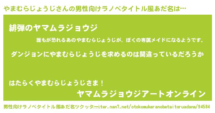| 意味不明あだ名 | 『とにかく怪しいやまむらじょうじ』 |