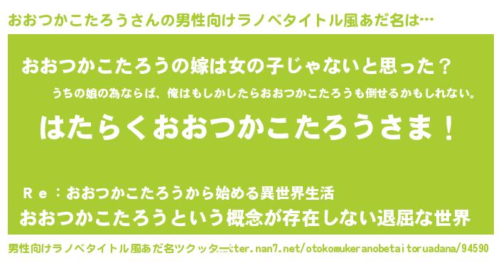 | 胡散臭い通販商品みたいなあだ名 | 『信頼と実績のサプリメント…その名も「おおつかこたろう」』 |