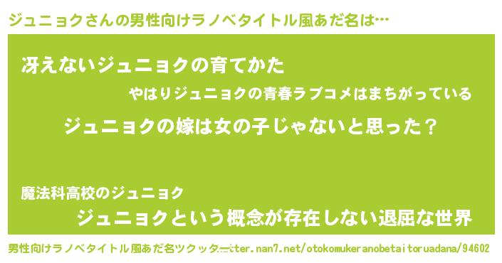 | 女子向けラノベタイトル風あだ名 | 『ジュニョク様がみてる』 |