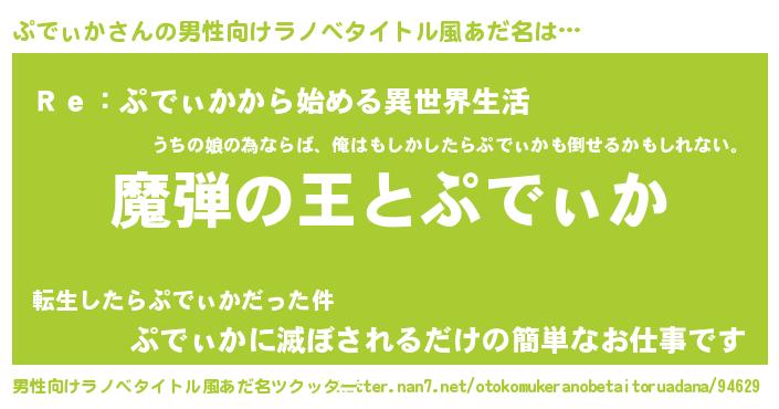 ぷでぃかさんの男性向けラノベタイトル風あだ名をツクッター!
