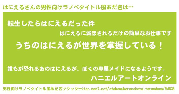 はにえるさんの男性向けラノベタイトル風あだ名をツクッター!