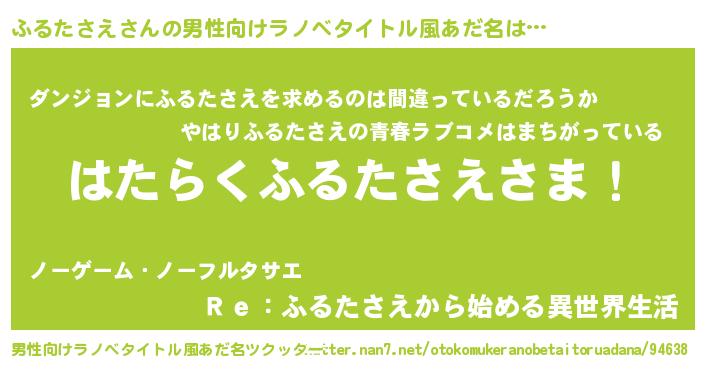 | 胡散臭い通販商品みたいなあだ名 | 『信頼と実績のネックレス…その名も「ふるたさえ」』 |