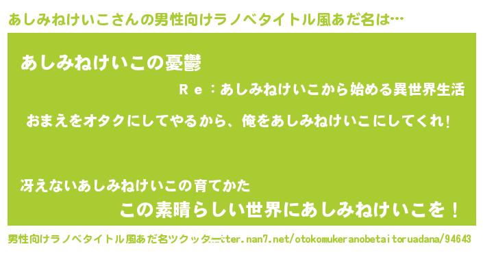 | ヘコむあだ名 | 『あしもー』『あしみねけいこ(苦笑)』 |