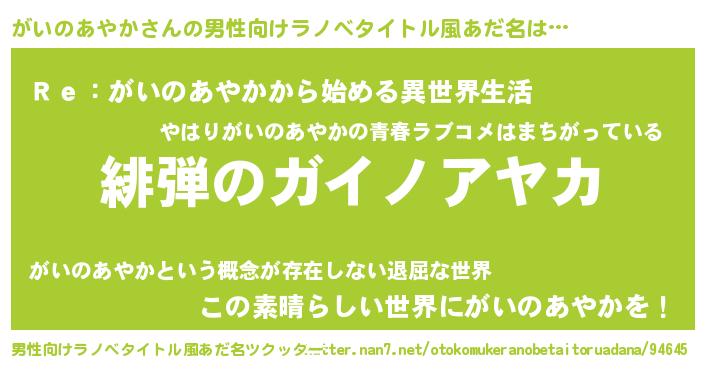 | 意味不明あだ名 | 『自称がいのあやか』 |
