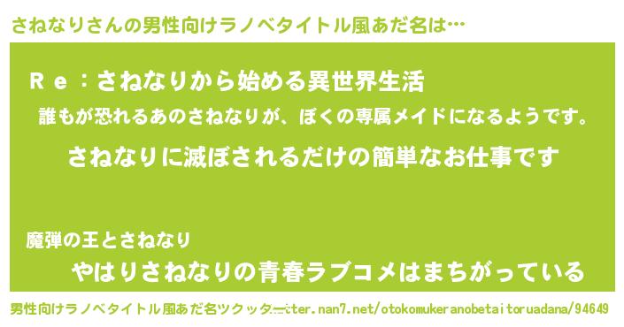 | 意味不明あだ名 | 『自称さねなり』『さねなりフォーエバー』 |