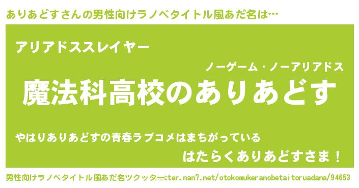 | 女子向けラノベタイトル風あだ名 | 『ありあどすなんてお断りですっ。』 |